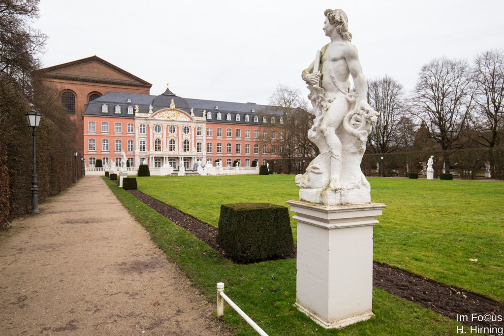 Auf dem weiteren Weg ins Stadtzentrum gelangt man durch den Palastgarten zum Kurfürstlichen Palais. Hier residierten im 17. und 18. Jhd. die Trierer Kurfürsten / Erzbischöfe.