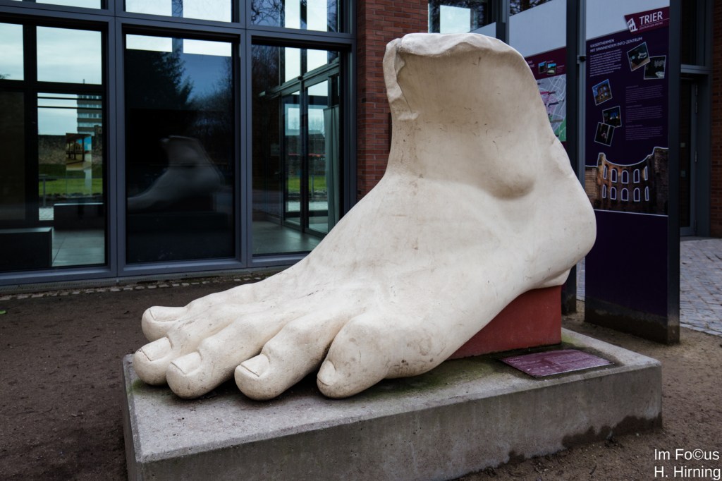 Trier selbst kann auf einen gewaltig großen historischen Fußabdruck verweisen. Bei dem Fuß im Bild unten handelt es sich um eine Nachbildung des Fußes von Kaiser Konstantin. Diese steht vor der Kaiserterme in Trier während sich das Original in Rom befindet.