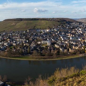 Panorama aus 6 Hochformataufnahmen. Weitere Beiträge zur Mosel siehe hier.