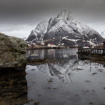 Inzwischen habe ich gelernt, immer dann zu fotografieren, wenn es gerade mal nicht regnet. Nur so ist es möglich, die wenigen regenfreien Stunden zu nutzen. Deshalb fing ich heute gleich in Ramberg an. Ein unspektakulärer Ort und dennoch findet sich ein lohnender Schiffsfriedhof und wohlriechende Trockengestelle für Stockfisch oder genauer gesagt für deren Köpfe.