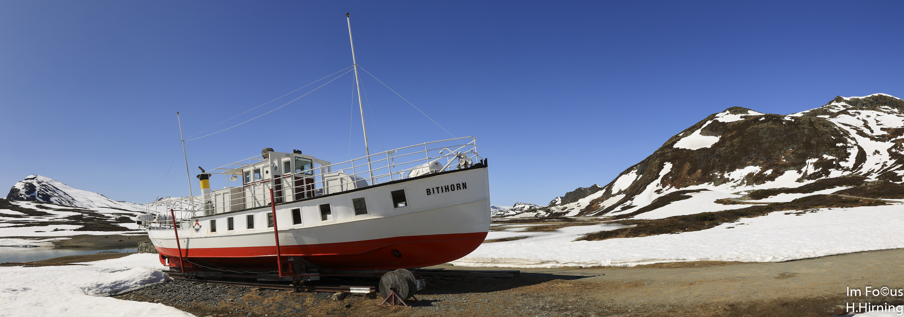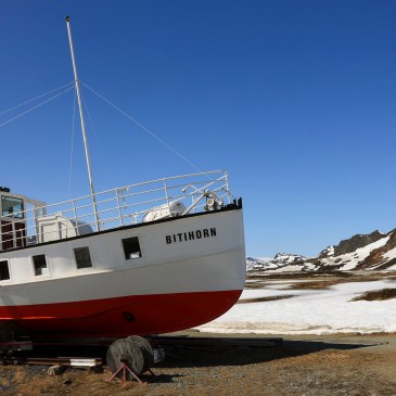 Auf der Valdresflye-Route durchs Jotunheimen passiert man den Bergsee Bygdin. Dort wird übern Winter das historische Motorschiff Bitihorn aufs „Trockene“ gesetzt.
