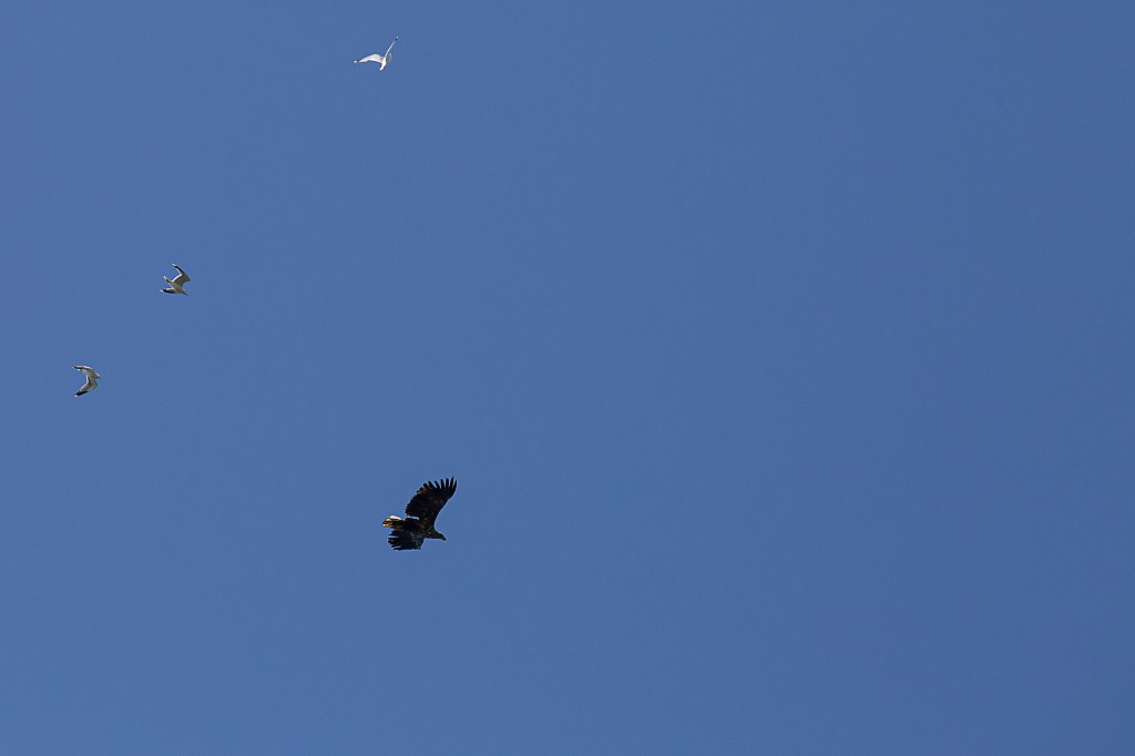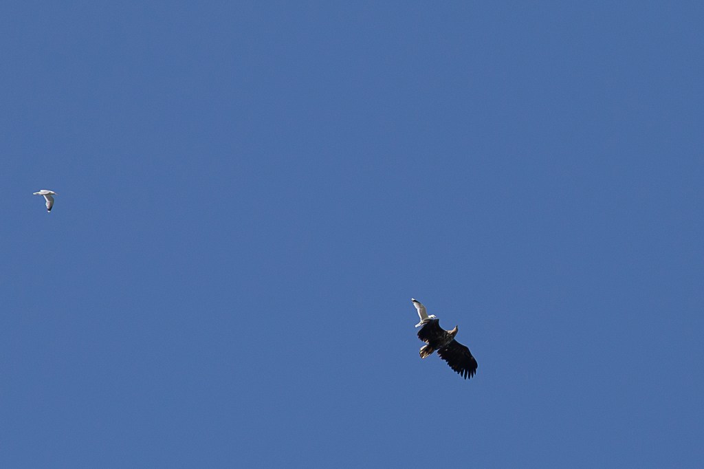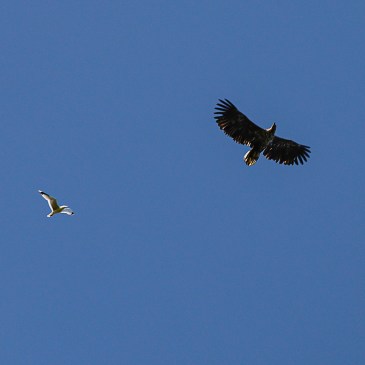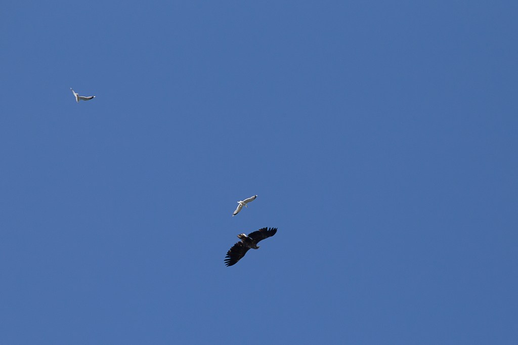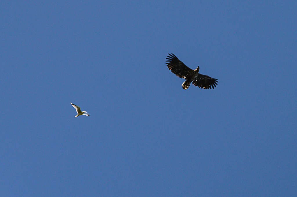 Letzten Sommer beobachtete ich in Norwegen, wie Möwen einen Steinadler in die Flucht schlugen. Ganz schön frech!